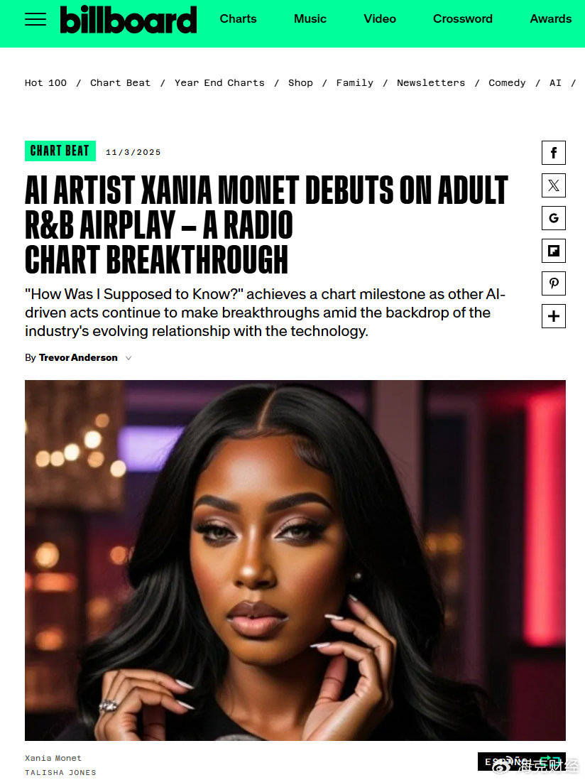 2024年6月,乐队比力抢手的做品《创做者核心》《菠菜去打工》等均有Suno等AI东西参取创做,到了2025年,被称为tokenization,这些歌曲被网友戏称为“3A大做”。以至大部门音乐从业者的程度都不如AI。
